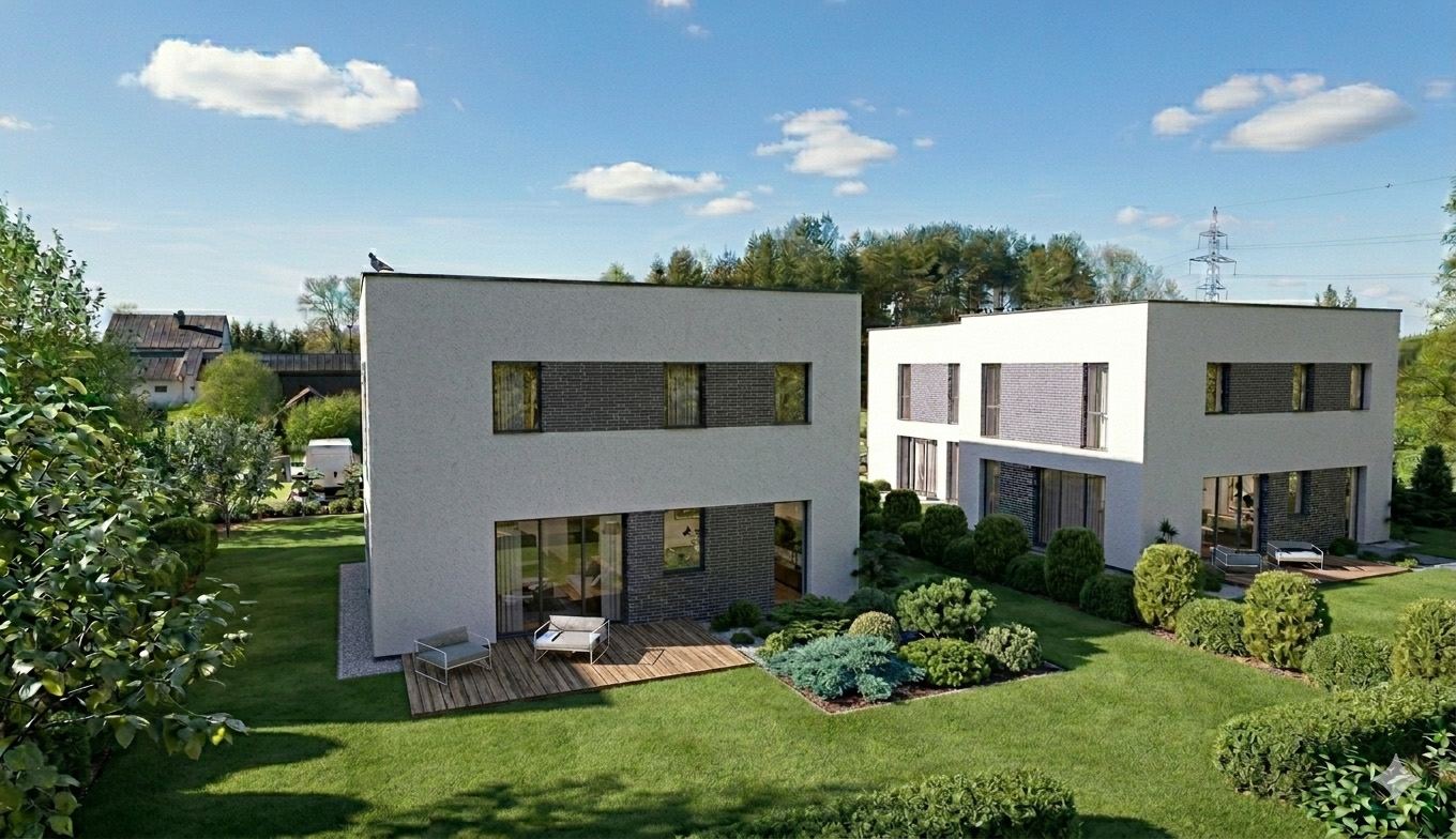 Kiekvienas dviejų aukštų namas – 110 m², 4 kambariai, 2 sanitariniai mazgai. Kaina nuo 179 000 € be apdailos arba nuo 250 000 € su pilna apdaila – paruošta gyventi.